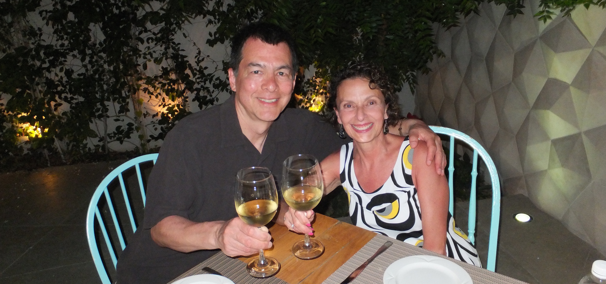 HereĀ is an anniversary self-portrait, on our balcony overlooking the Sea of Cortez.
